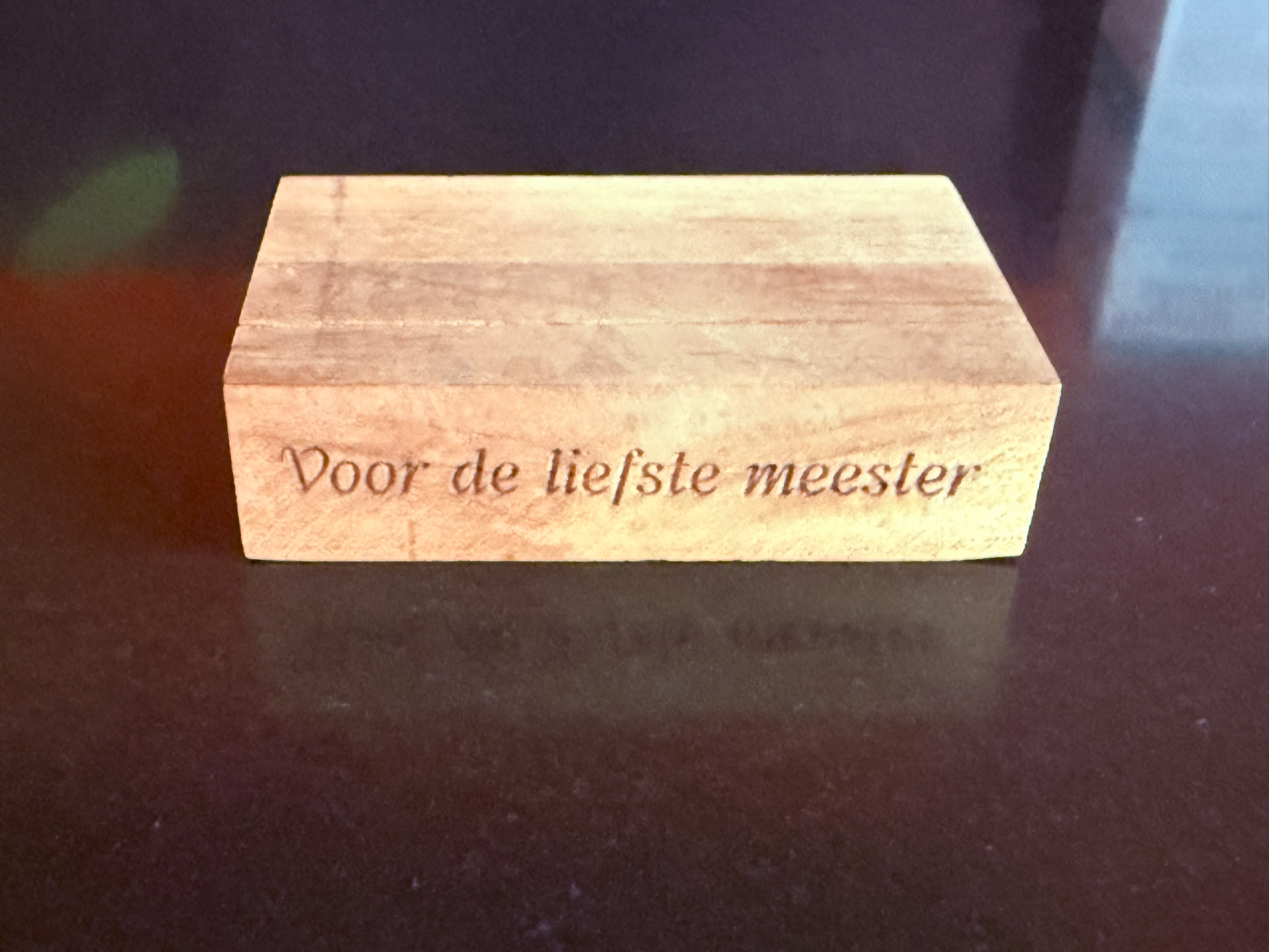 Bedank jouw juf of meester met een uniek en duurzaam geschenk: een handgemaakt fotohoudertje uit gerecupereerd teakhout. Elk blokje heeft zijn eigen nerven, littekens en karakter, gevormd door tijd en opnieuw tot leven gebracht als een stijlvol houdertje voor een lieve foto, kaartje of tekening.